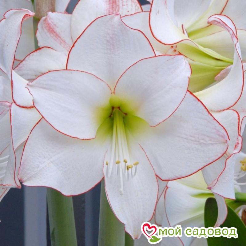 Амариллис Пикоти — многолетнее луковичное растение. Изящный амариллис Пикоти поистине удивителен! Его бутоны – это шесть огромных лепестков, окрашенных в идеально белый цвет. По краю каждого лепестка проходит настолько тонкая окантовка, что кажется, вот-вот – и она разорвется. Диаметр цветка: 15 см Высота растения: 70 см.