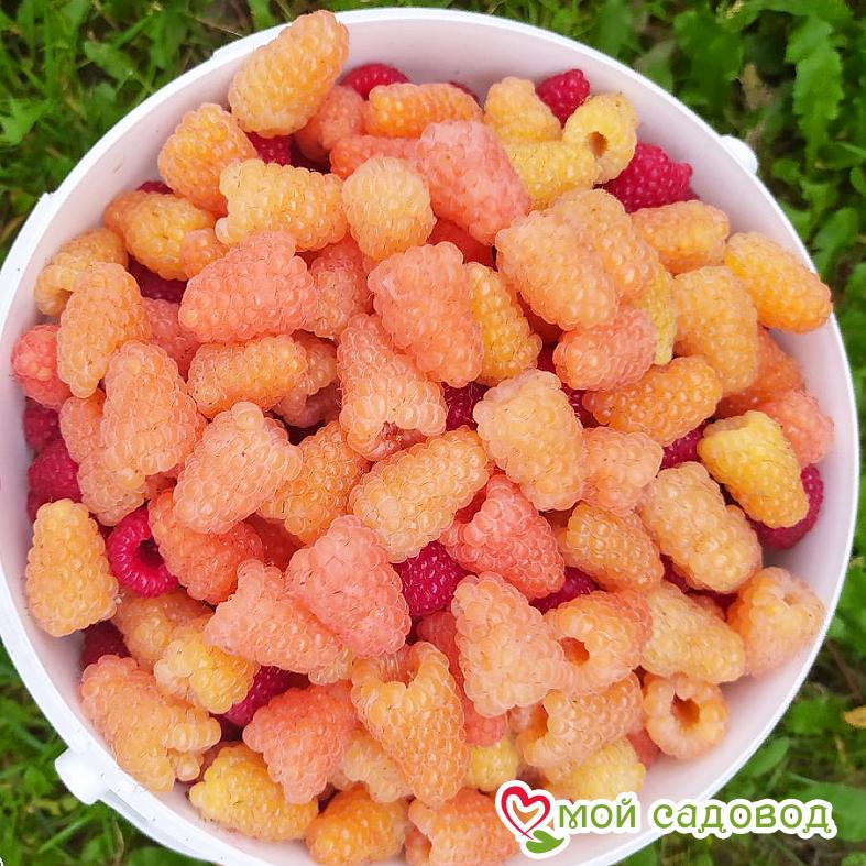 Малина Оранжевое Чудо – чудесный ярко-оранжевый ремонтантный сорт, который отличается высокой урожайностью (около 4 кг/куст). Радовать первыми плодами начинает в середине июля, заканчивает – при наступлении первых морозов. Удлиненные ягодки кисло-сладкие на вкус, с характерным тонким ароматом. Хорошая устойчивость к морозам.